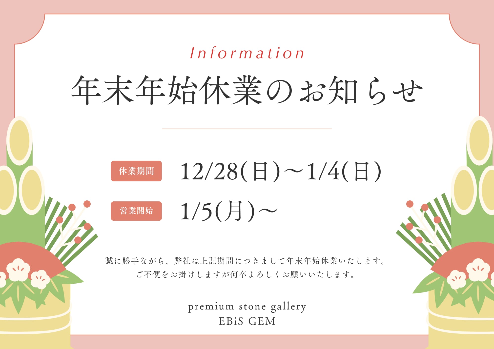 年末年始出荷休止のお知らせ:12月28日(日)〜1月4日(月)