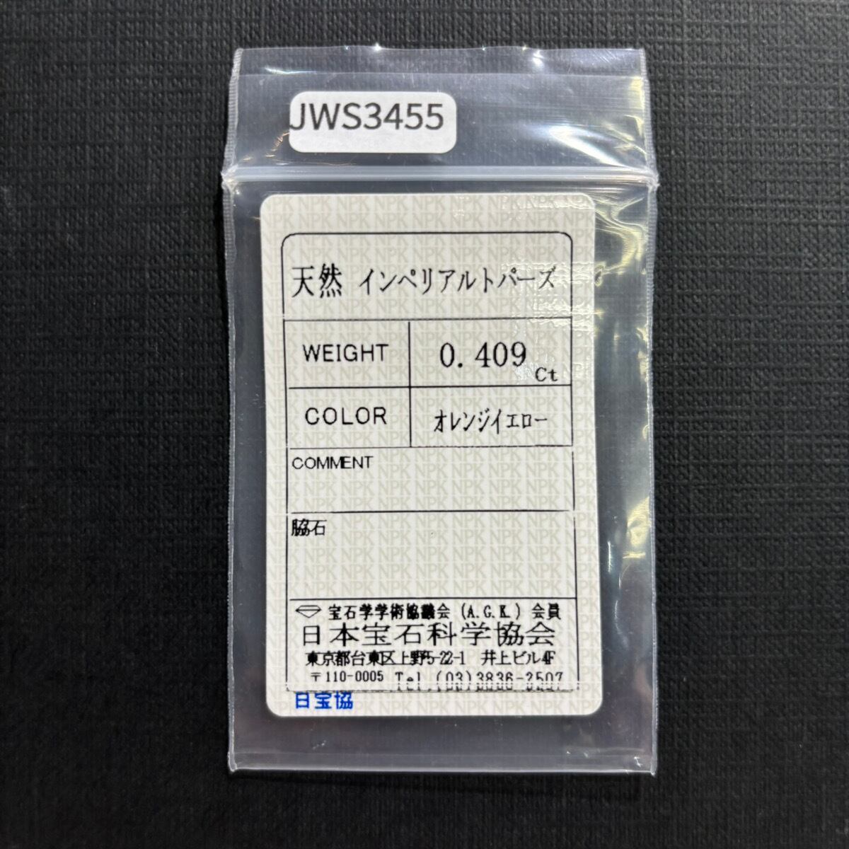 【9/11新着】インペリアルトパーズ 0.409ct【ソーティングメモ付】#JWS3455