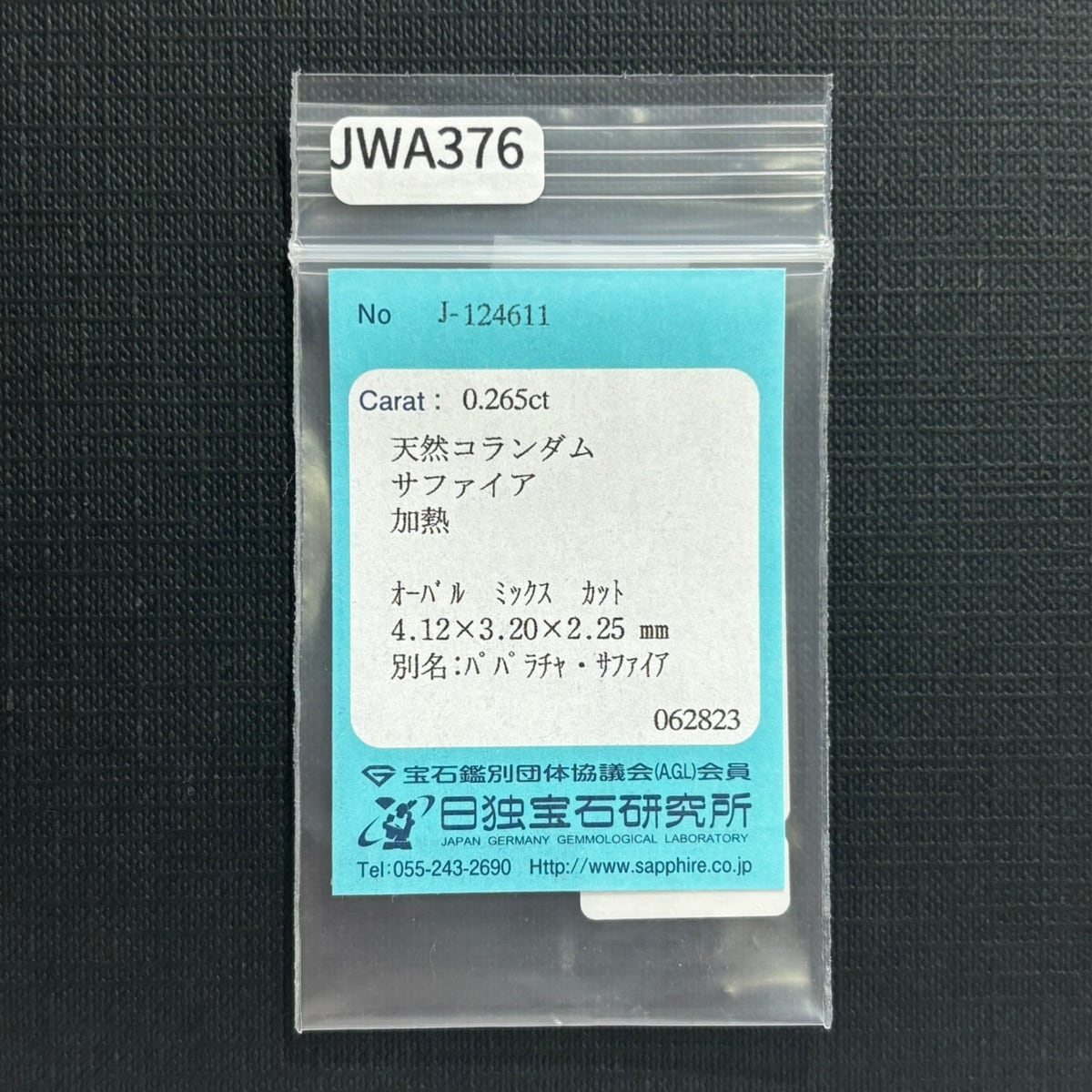 【10/23新着】パパラチャサファイア0.265ct【ソーティングメモ付】 #JWA376