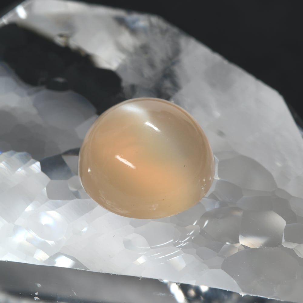 【一点もの保証】本品は一点ものです。写真の品をお届けいたします。お問い合わせの際は商品番号「QE017」をお知らせください。【商品データ】宝石名:オレンジムーンストーン / 重さ:3.32ct / カット:ラウンド・カボションカット / サイズ:9.1x5.7mm / 色:オレンジ / 産地:タンザニア