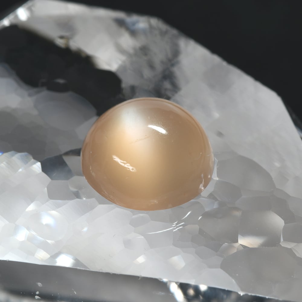 【一点もの保証】本品は一点ものです。写真の品をお届けいたします。お問い合わせの際は商品番号「QE018」をお知らせください。【商品データ】宝石名:オレンジムーンストーン / 重さ:2.54ct / カット:ラウンド・カボションカット / サイズ:9.0x4.4mm / 色:オレンジ / 産地:タンザニア