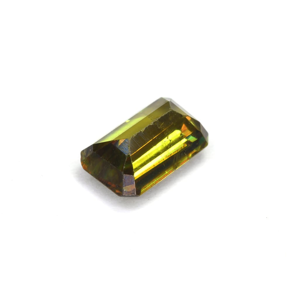 【一点もの保証】本品は一点ものです。写真の品をお届けいたします。お問い合わせの際は商品番号「JWS320」をお知らせください。【商品データ】宝石名:スフェーン/ 重さ:1.253ct / カット:エメラルド・カット / サイズ:7.5X4.7X3.4mm / カラー:グリーン / 産地:パキスタン / 注意事項:面傷、ファセットエッジに当たり傷、ルーペでインクルージョンが見られる個体もございます。