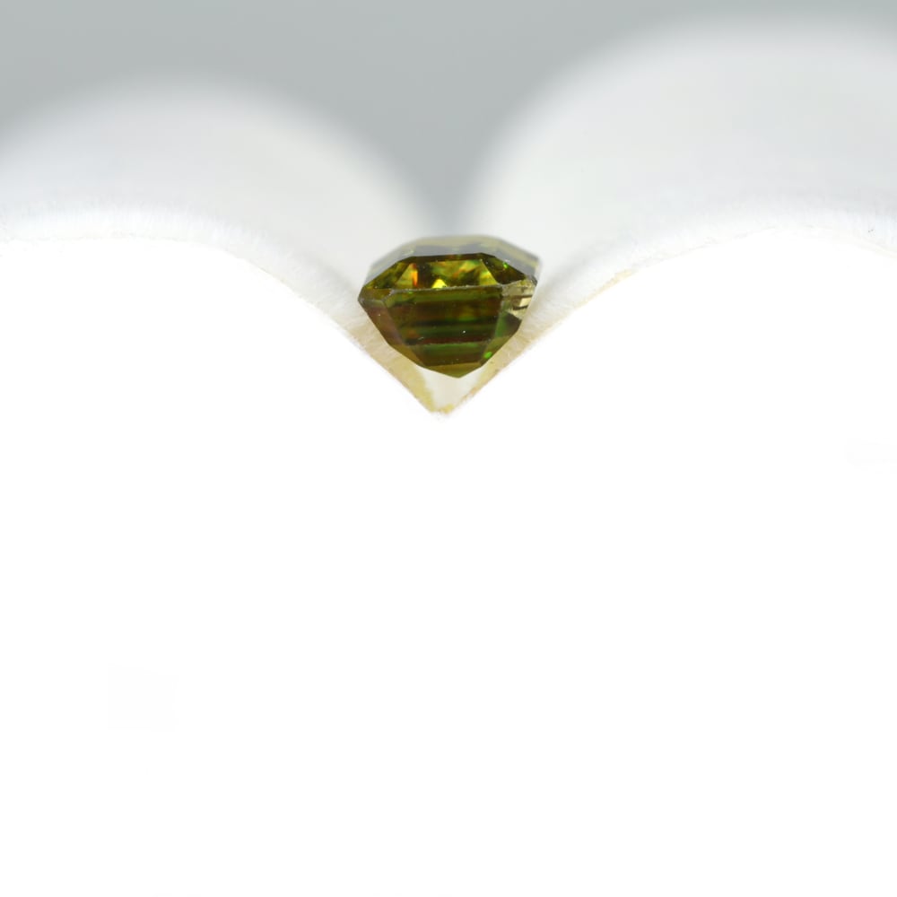 【一点もの保証】本品は一点ものです。写真の品をお届けいたします。お問い合わせの際は商品番号「JWS325」をお知らせください。【商品データ】宝石名:スフェーン/ 重さ:0.92ct / カット:エメラルド・カット / サイズ:6.8X4.2X3.1mm / カラー:グリーン / 産地:パキスタン / 注意事項:面傷、ファセットエッジに当たり傷、ルーペでインクルージョンが見られる個体もございます。