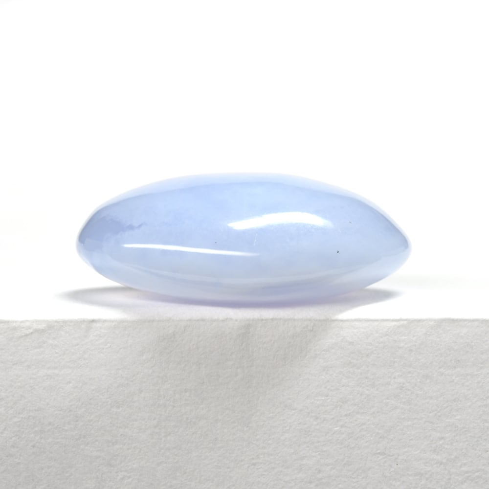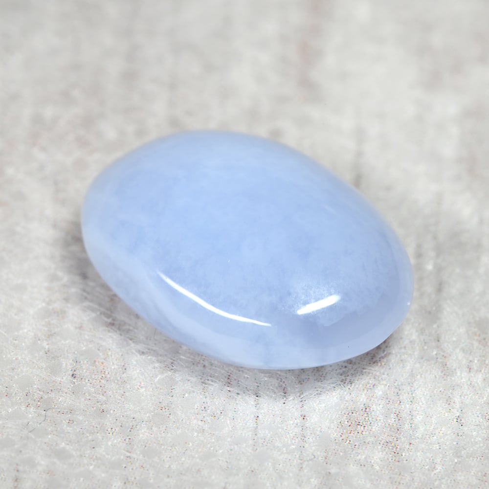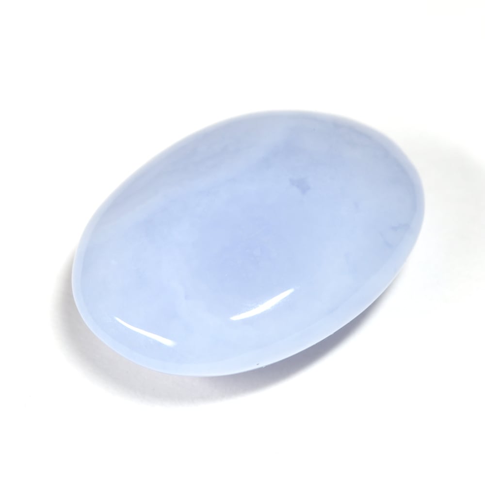 【一点もの保証】本品は一点ものです。写真の品をお届けいたします。お問い合わせの際は商品番号「ML1140」をお知らせください。【商品データ】宝石名:ブルーカルセドニー / 重さ:7.45ct / カット:オーバル・カボション / サイズ:15.5X11.6X5.8mm / 色:パステルブルー