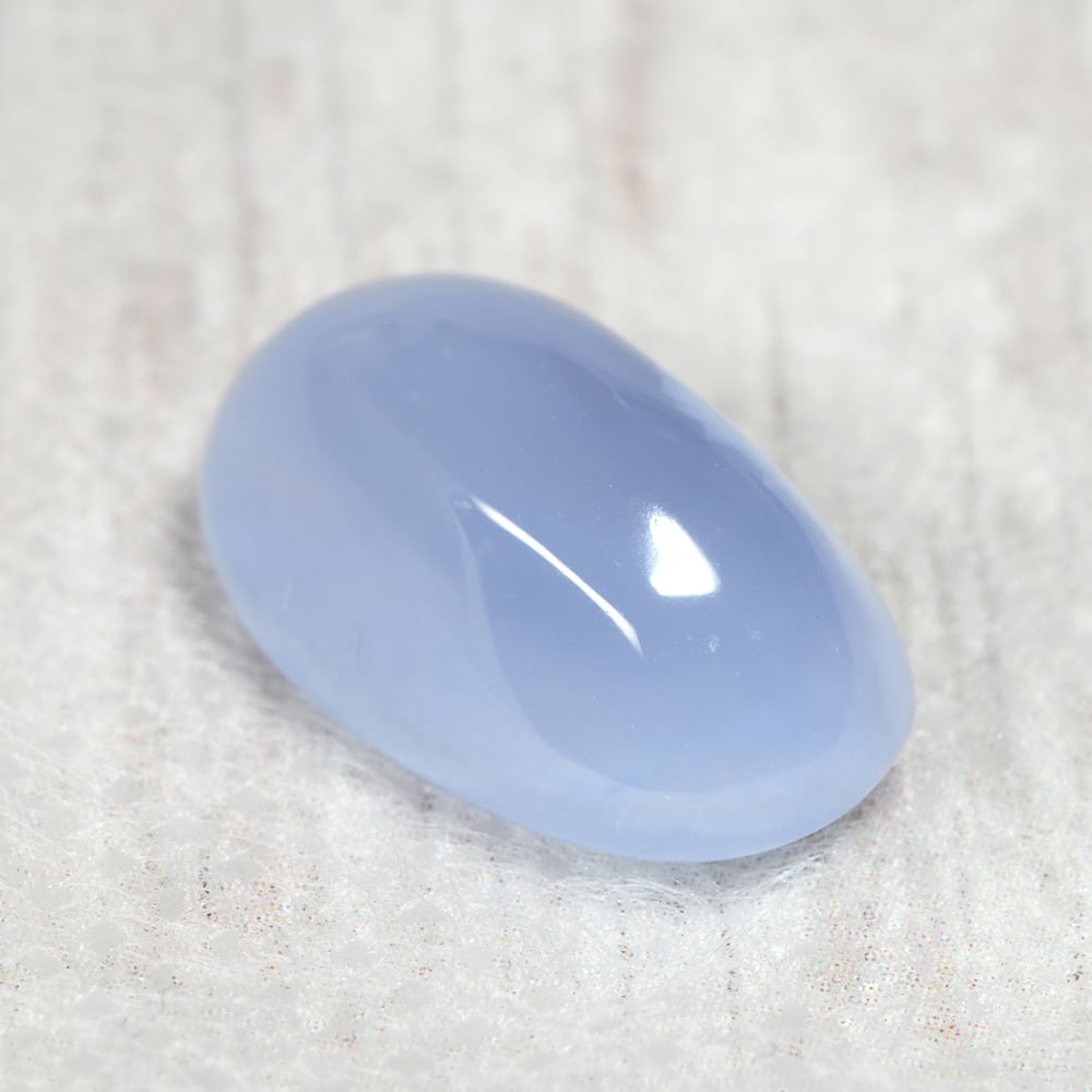 【一点もの保証】本品は一点ものです。写真の品をお届けいたします。お問い合わせの際は商品番号「ML1147」をお知らせください。【商品データ】宝石名:ブルーカルセドニー / 重さ:7.8ct / カット:オーバル・カボション / サイズ:15.8X9.5X7.3mm / 色:パステルブルー
