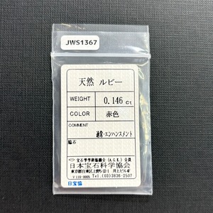 【7/24新着】ルビー 0.146ct【ソーティングメモ付】#JWS1367