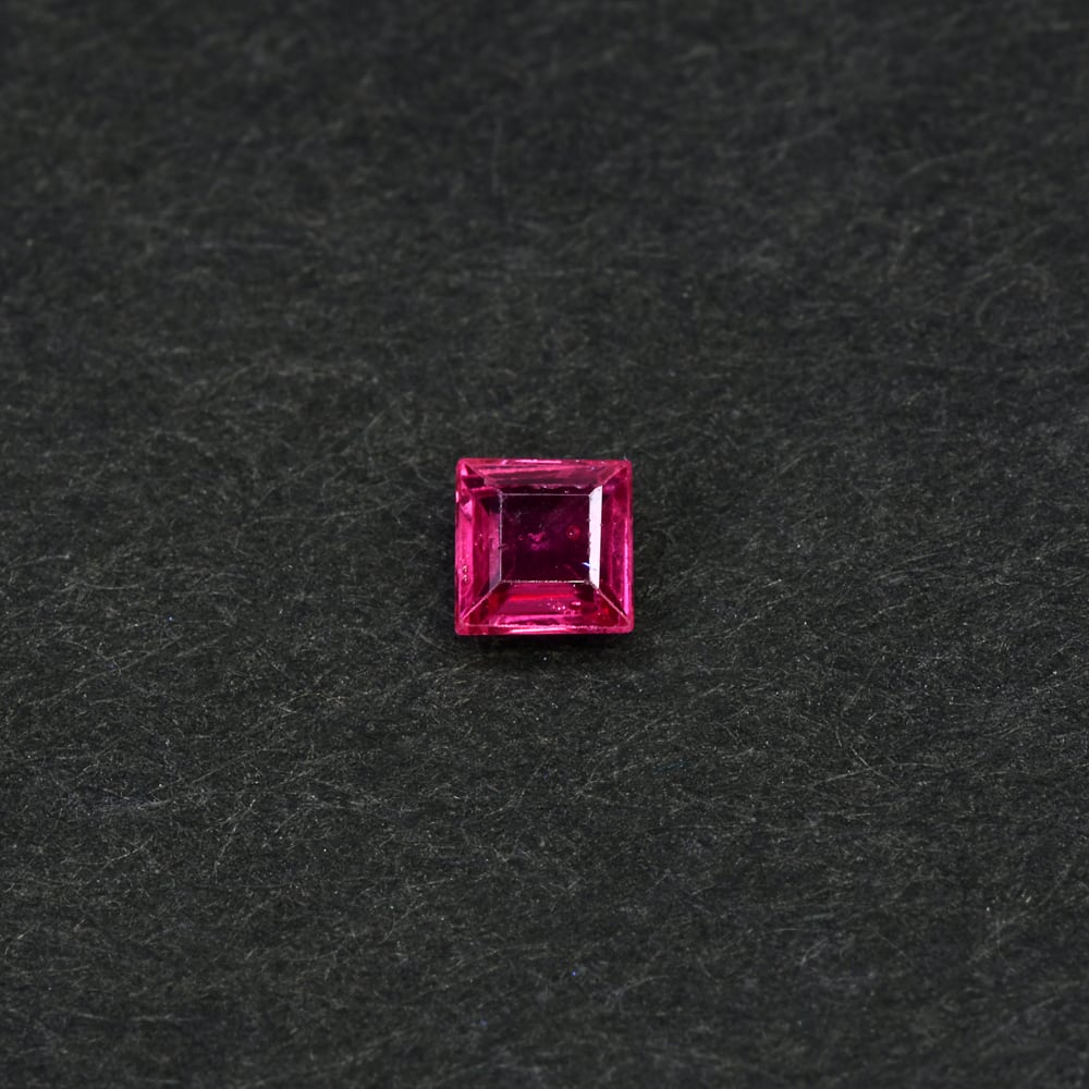 【一点もの保証】本品は一点ものです。写真の品をお届けいたします。お問い合わせの際は商品番号「JWS1367」をお知らせください。【商品データ】宝石名:ルビー / 重さ:0.146ct / カット:スクエア・カット / サイズ:2.81x2.77x1.53mm / 色:赤色 / 鑑別:日本宝石科学協会 / 備考:通常ーエンハンスメント