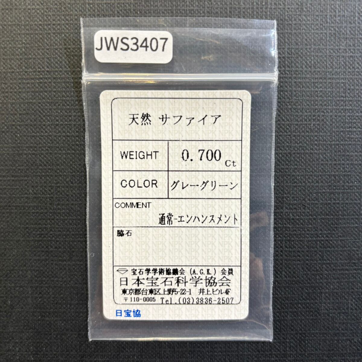 【一点もの保証】本品は一点ものです。写真の品をお届けいたします。お問い合わせの際は商品番号「JWS3407」をお知らせください。【商品データ】宝石名:サファイア / 重さ:0.7ct / カット:オーバル・ミックス・カット / サイズ:5.7x4.6x3.1mm / 色:グレーグリーン / 産地:ソンゲア / 鑑別:日本宝石科学協会 ソーティング付