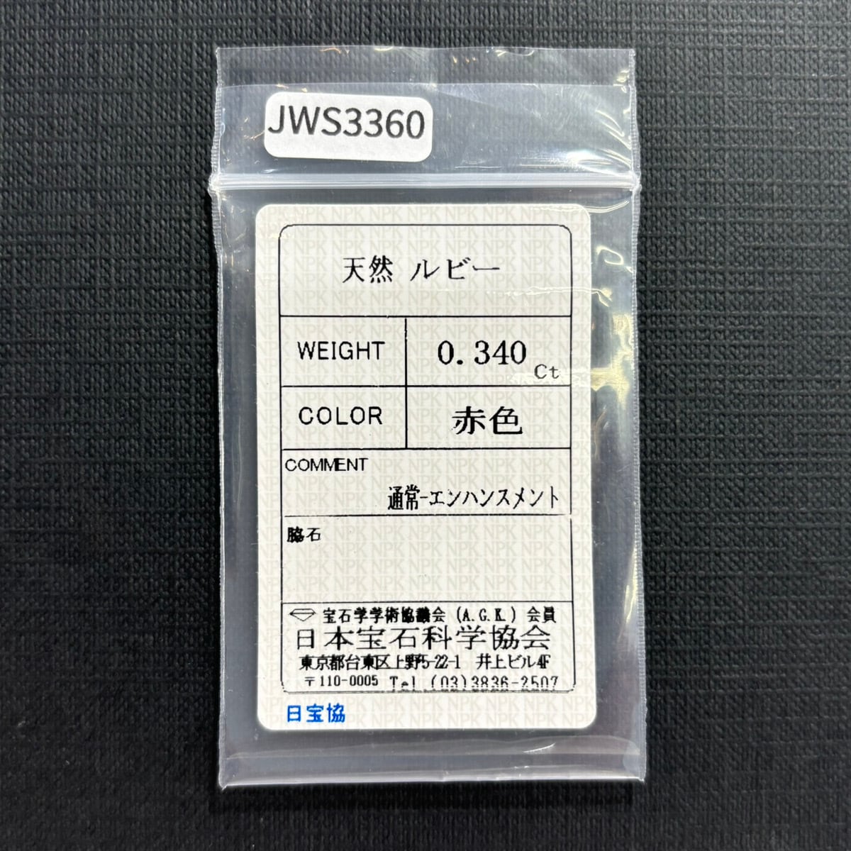 【7/24新着】ルビー 0.34ct【ソーティングメモ付】#JWS3360