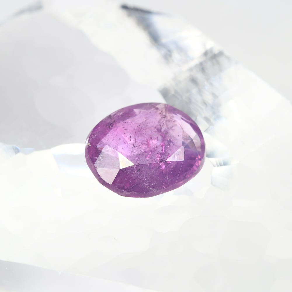 【一点もの保証】本品は一点ものです。写真の品をお届けいたします。お問い合わせの際は商品番号「JWS3921」をお知らせください。【商品データ】宝石名:パープル・サファイア / 重さ:2.746ct / カット:オーバル・ミックス・カット / サイズ:8.51x8.47x3.90mm / カラー:レディッシュパープル / 産地:パキスタン・カシミール