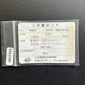【2/24新着」】ブルートルマリン アフガニスタン産 7.493ct【口答鑑別メモ付】 #JWS1326