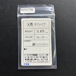 【一点もの保証】本品は一点ものです。写真の品をお届けいたします。お問い合わせの際は商品番号「JWS4706」をお知らせください。【商品データ】宝石名:サファイア / 重さ:0.47ct / カット:オクタゴナル・カット / サイズ:3.7x3.7x2.9mm / 色:ブルーグリーン / 産地:タンザニア / 鑑別:日本宝石科学協会 ソーティング / 備考:通常-エンハンスメント