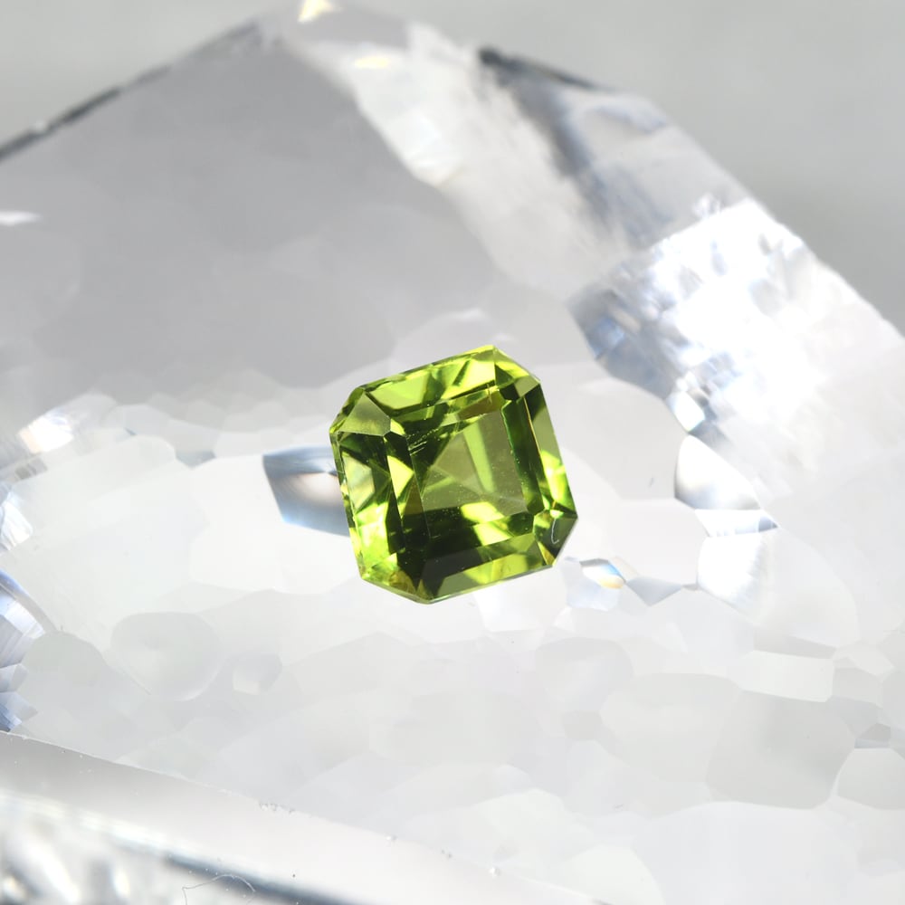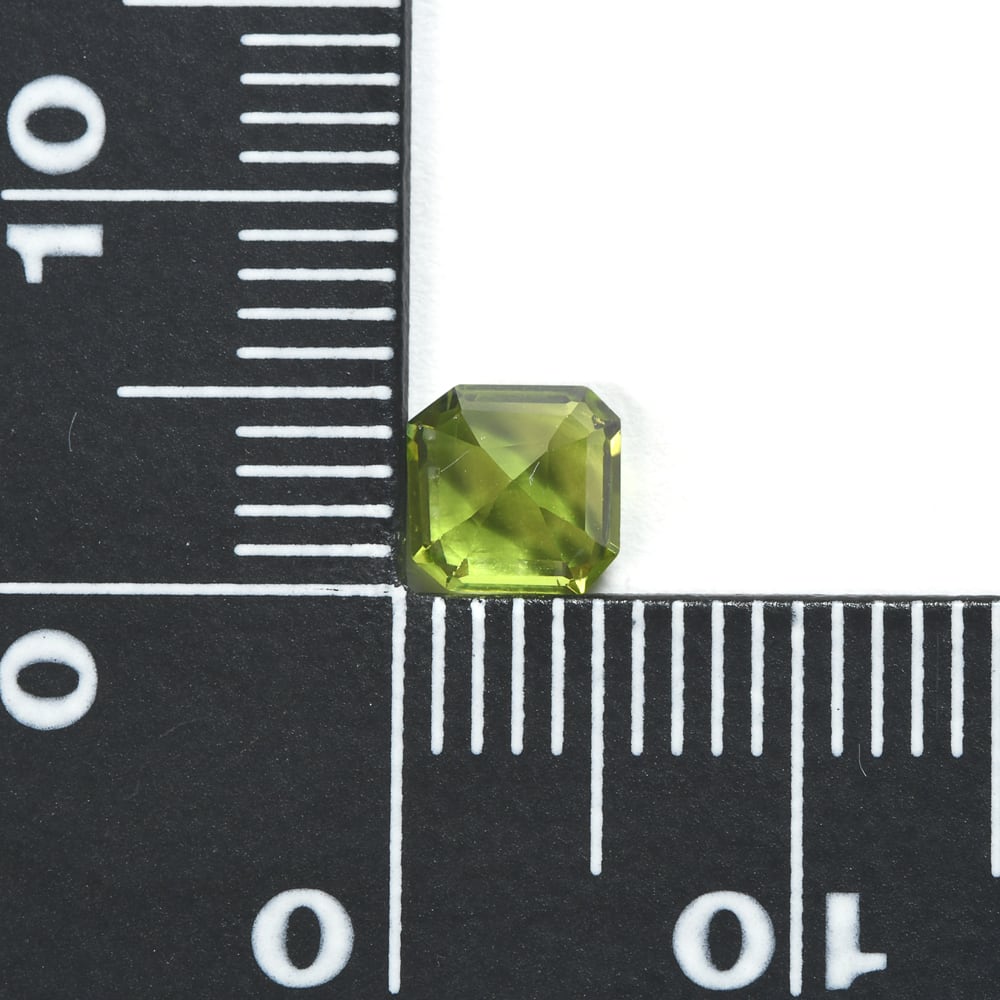 【一点もの保証】本品は一点ものです。写真の品をお届けいたします。お問い合わせの際は商品番号「JWS3027」をお知らせください。【商品データ】宝石名:ペリドット / 重さ:0.891ct / カット:エメラルド・カット / サイズ:5.39x5.29x4.08mm / 色:グリーン