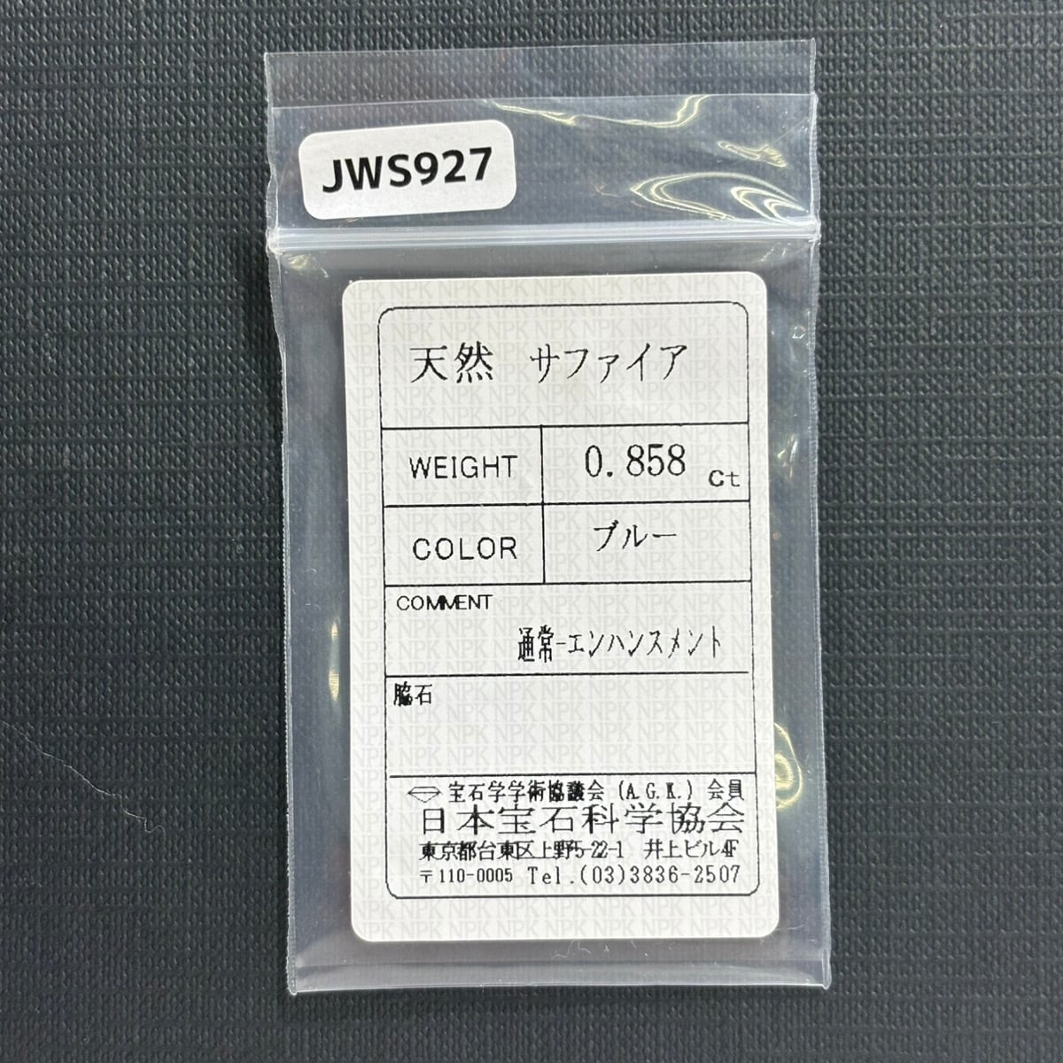 【10/14新着】サファイア オーストラリア産 0.858ct【ソーティングメモ付】 #JWS927