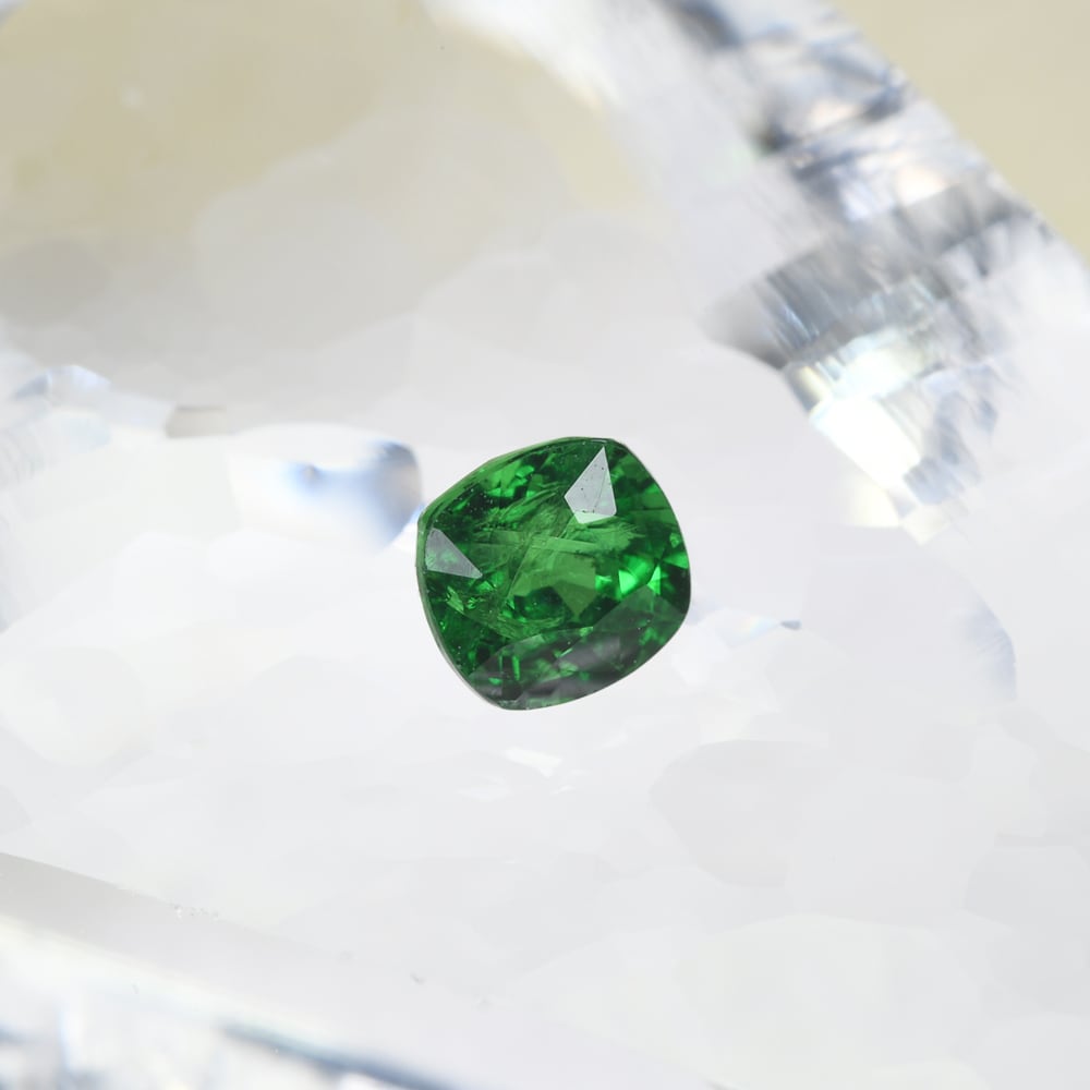【一点もの保証】本品は一点ものです。写真の品をお届けいたします。お問い合わせの際は商品番号「ML1696」をお知らせください。【商品データ】宝石名:ツァボライト / 重さ:0.58ct / カット:クッション・ミックス・カット / サイズ:4.53x4.38x3.61mm / 色:グリーン / 産地:タンザニア/ 注意事項:ルーペでインクルージョンが見られる個体もございます。