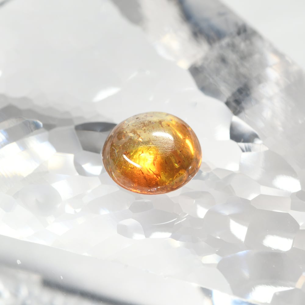 【一点もの保証】本品は一点ものです。写真の品をお届けいたします。お問い合わせの際は商品番号「JWA2385」をお知らせください。【商品データ】宝石名:スファレライト/ 重さ:1.39ct / カット:ラウンド・カボション / サイズ:6.2×6.2×3.4mm / 色:イエロー・オレンジ / 産地:スペイン