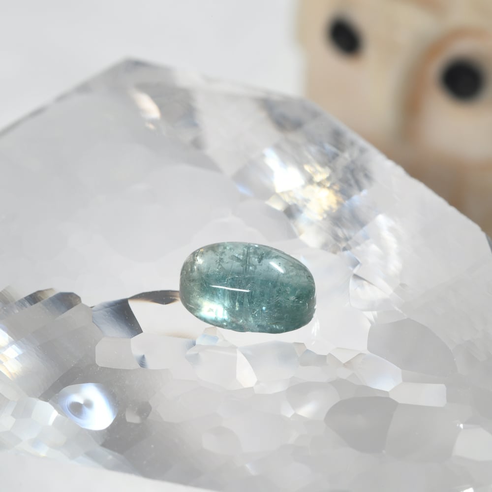 【一点もの保証】本品は一点ものです。写真の品をお届けいたします。お問い合わせの際は商品番号「PK816」をお知らせください。【商品データ】宝石名:トルマリン / 重さ:0.47ct / カット:オーバルカボションカット / サイズ:6×4×2.7mm / 色:ブルー / 産地:ブラジル