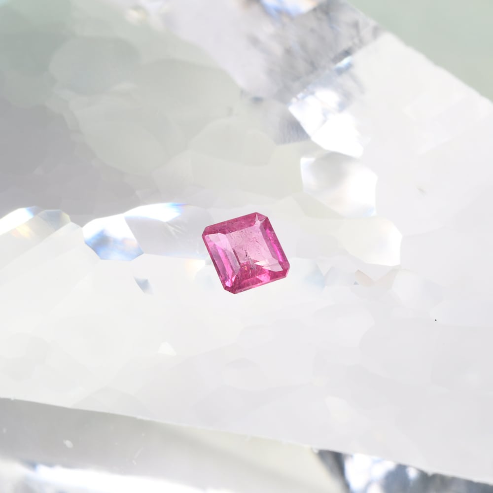 【一点もの保証】本品は一点ものです。写真の品をお届けいたします。お問い合わせの際は商品番号「JWA2551」をお知らせください。【商品データ】宝石名:レッドベリル / 重さ:0.077ct / カット:エメラルドカット/ サイズ:2.87×2.83×1.42mm / 色:レッド / 産地:アメリカ / 鑑別:日独宝石研究所 / 備考:含浸