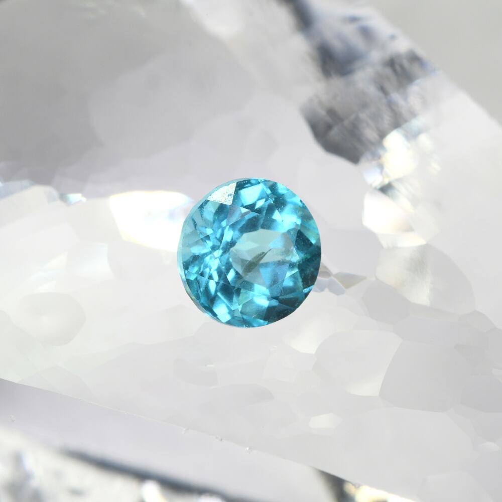 【一点もの保証】本品は一点ものです。写真の品をお届けいたします。お問い合わせの際は商品番号「JWA3605」をお知らせください。【商品データ】宝石名:アパタイト / 重さ:0.843ct / カット:ラウンド・ミックス・カット / サイズ:5.6×5.6×4.1mm / 色:ブルー / 産地:ブラジル / 注意事項:ルーペでクラックやインクルージョンが見られる個体もございます。