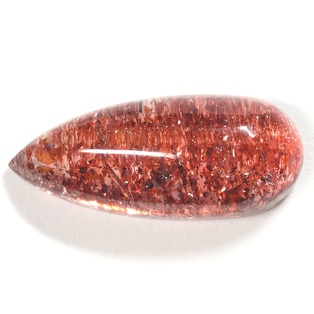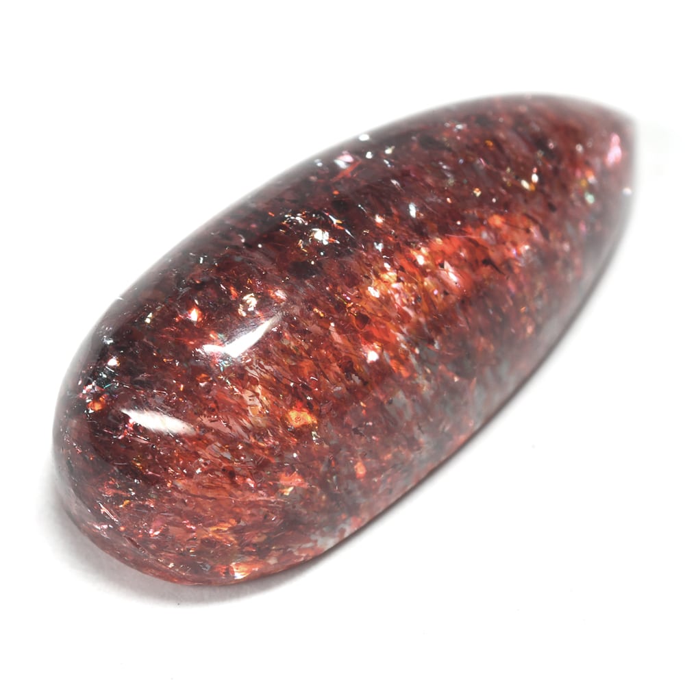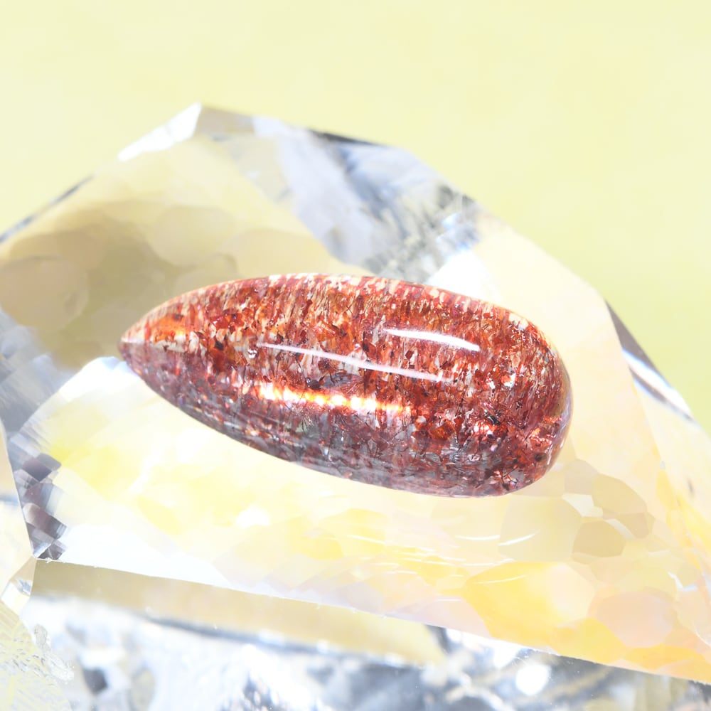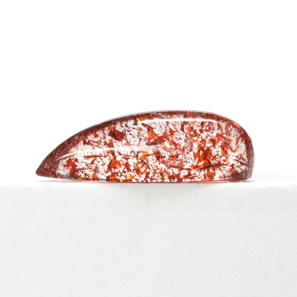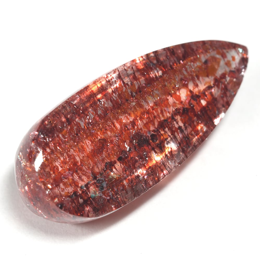【一点もの保証】本品は一点ものです。写真の品をお届けいたします。お問い合わせの際は商品番号「QF057」をお知らせください。【商品データ】宝石名:レピドクロサイトインクォーツ / 重さ:8.12ct / カット:カボションカット / サイズ:7.8×18.2×6.1mm / 色:レッド / 産地:マダガスカル