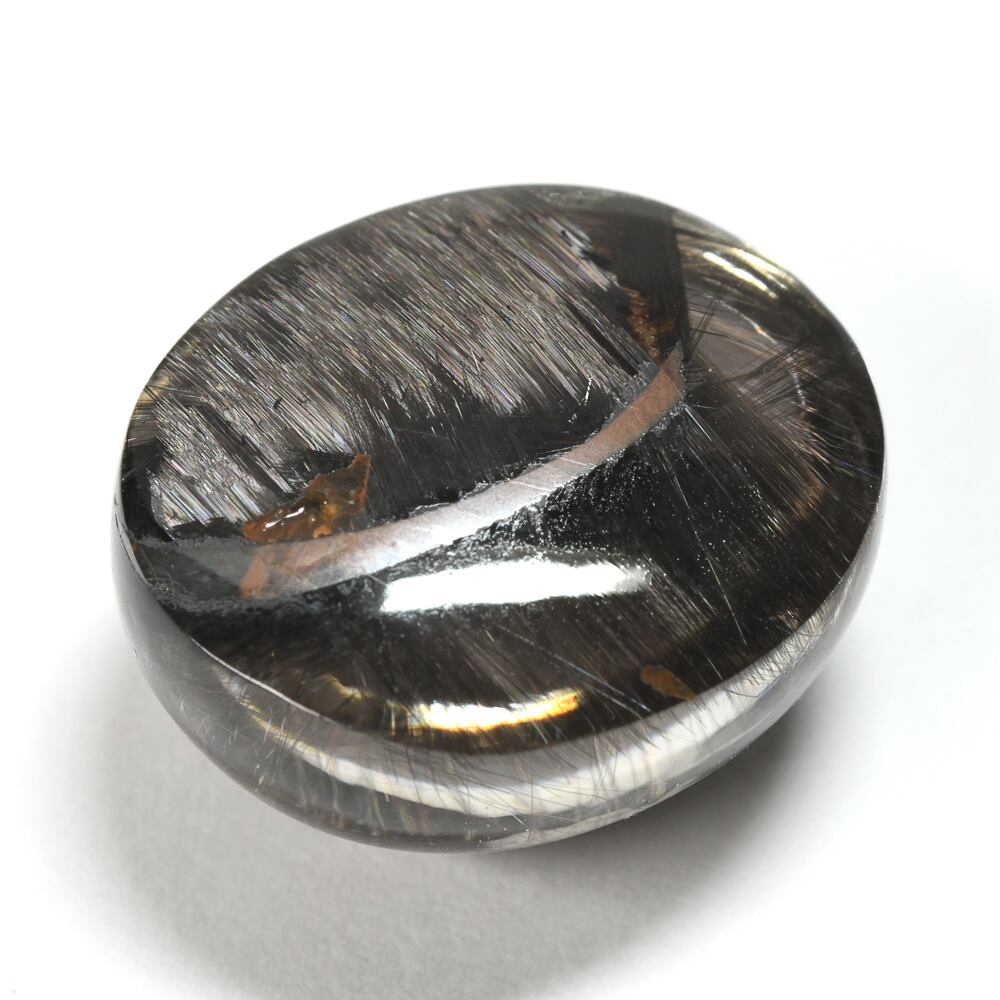 【一点もの保証】本品は一点ものです。写真の品をお届けいたします。お問い合わせの際は商品番号「JWA2866」をお知らせください。【商品データ】宝石名:プラチナルチルクォーツ / 重さ:10.85ct/ カット:カボションカット/ サイズ:12×14.2×8.5mm / 色:ブラック / 産地:ブラジル