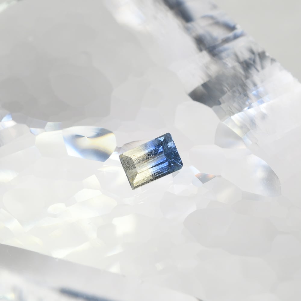 【一点もの保証】本品は一点ものです。写真の品をお届けいたします。お問い合わせの際は商品番号「JWA559」をお知らせください。【商品データ】宝石名:バイカラーサファイア / 重さ:0.181ct / カット:バゲット・カット/ サイズ:3.74x2.38x1.74mm / 色:イエロー・ブルー