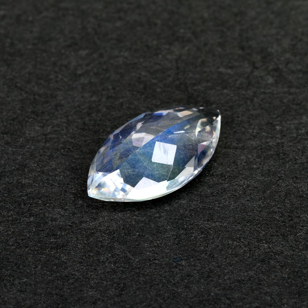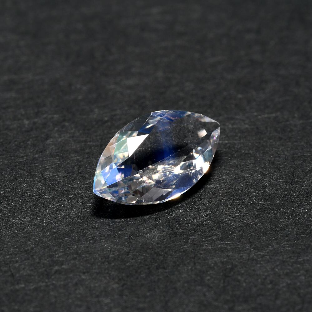【一点もの保証】本品は一点ものです。写真の品をお届けいたします。お問い合わせの際は商品番号「JWA1134」をお知らせください。【商品データ】宝石名:レインボームーンストーン / 重さ:0.759ct / カット:マーキス・カット / サイズ:9.35x5.29x2.83mm / 色:乳白色